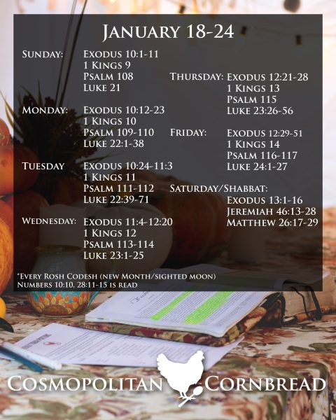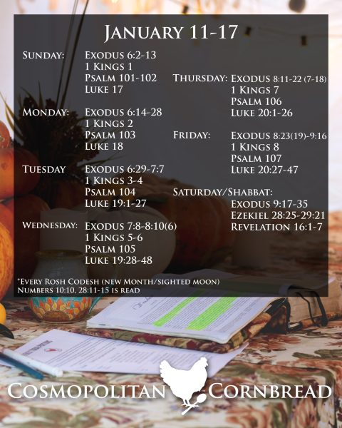 Here is the current (and some coming) weekly bible reading schedule. Feel free to save this schedule for reference throughout the week, or share it on social media for others to read along with you.