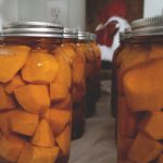 The processing time for canning sweet potatoes is:65 minutes for pints90 minutes for quartsIf the elevation where you live is over 1,000 feet, you will need to adjust your processing. See the charts in the post above. Be sure to follow all of the steps for proper pressure canning.